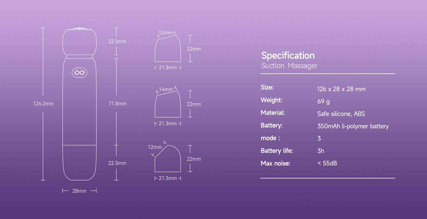 Exuding elegance with its compact size, this device is convenient to bring along wherever you go. Specifically crafted for privacy-conscious women, it ensures discretion without compromising functionality. Featuring stepless speed control, the massager allows precise adjustment by smoothly twisting the knob. The knob rotates approximately 270 degrees, enabling users to easily select their preferred speed. It includes three varying sizes of suction nozzles to cater to your unique preferences. With adjustable suction intensity and a seamless mode transition, expect a comfortable and customized experience. Plus, its large-capacity lithium polymer battery provides hours of use with just one charge. Enjoy the convenience of three pre-set function modes.