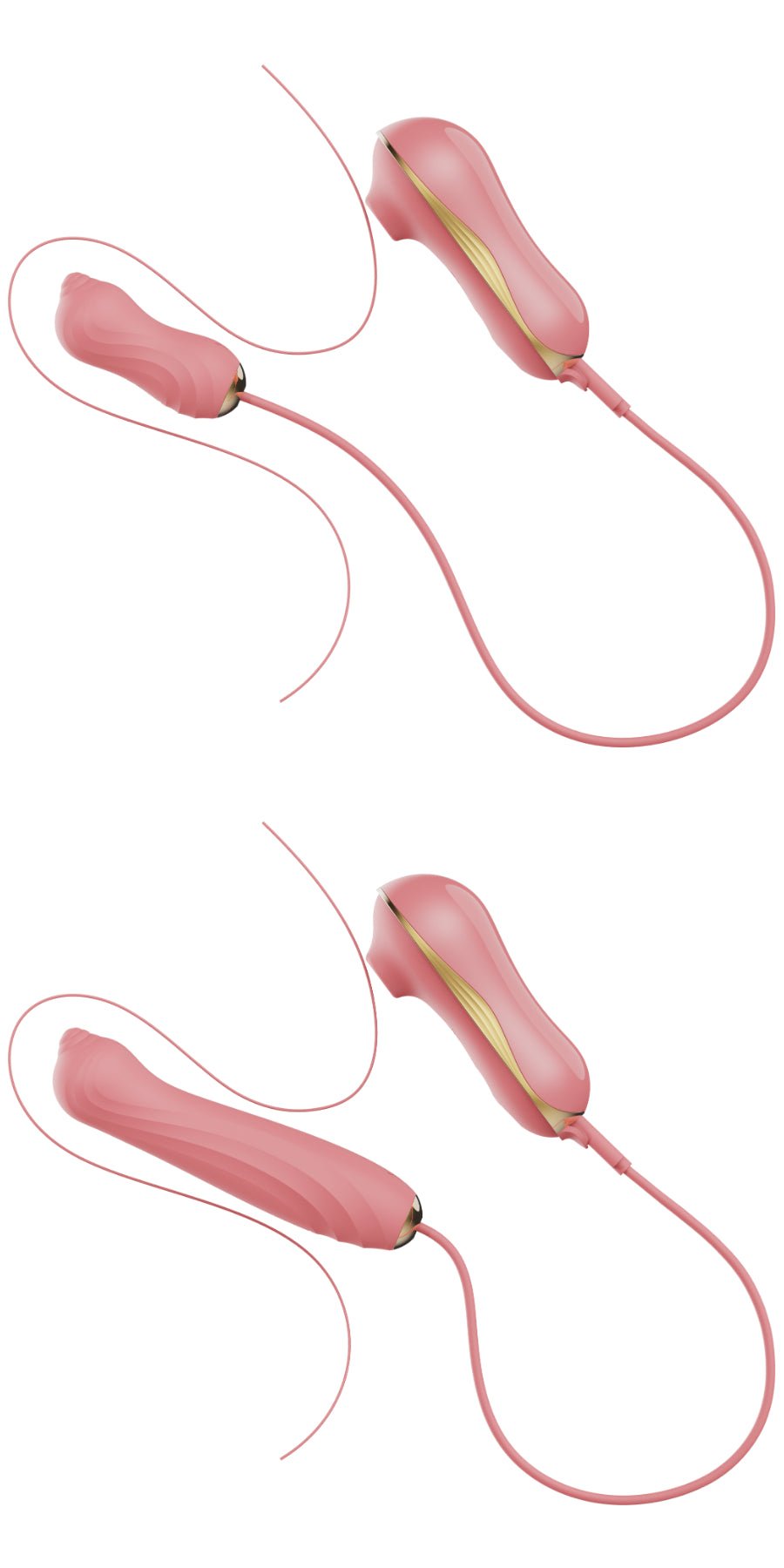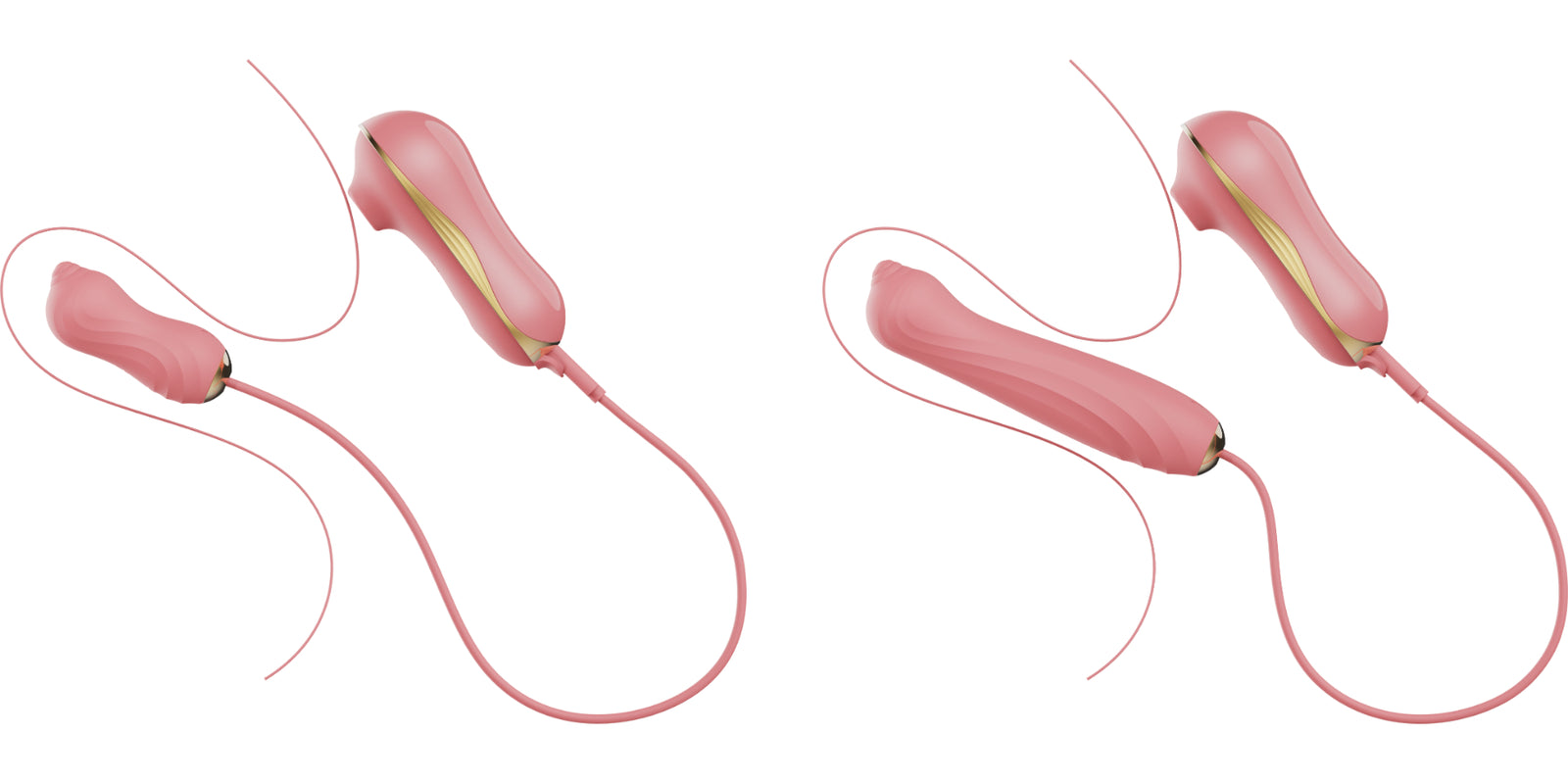 In the box: clitoral toy, vibrating egg, mini thruster, USB charging cable, storage pouch, instructions manual